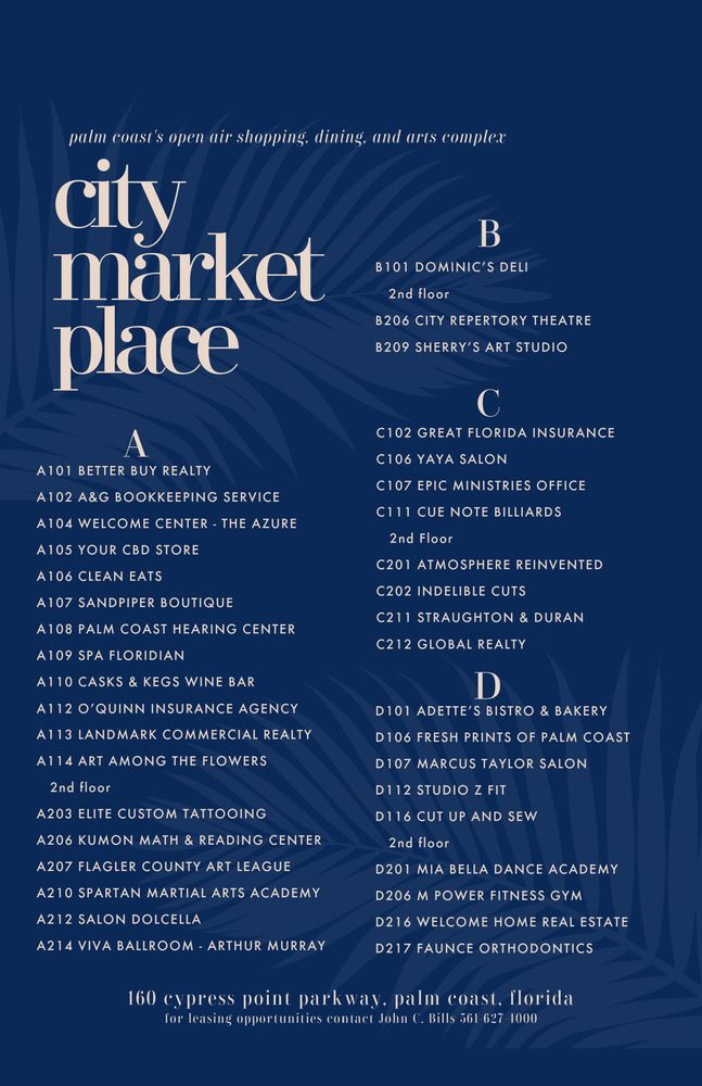 Flagler County, FL Listings Local Resources Dining Shopping Leisure Highest Rated Shopping Island Walk Shopping Center $ 1 reviews Shopping Centers 250 Palm Coast Pkwy NESte 1100 European Village $$ 44 reviews Hotels, Pop-Up Restaurants, Shopping Centers (386) 447-9339 101 Palm Harbor PkwyPalm Coast, FL 32137 Lilly Pad image/svg+xml $ 1 reviews Antiques, Home Decor (386) 263-2923 801 N State StBunnell, FL 32110 Poppyās True Market $ 2 reviews Antiques, Nurseries & Gardening, Yoga (386) 931-5710 802 E Moody BlvdBunnell, FL 32110 Junque in the Trunk $ 22 reviews Antiques, Home Decor, Used, Vintage & Consignment (386) 693-4952 2505-2507 W Moody BlvdFlagler Beach, FL 32136 Boo Boo Discount Store $ 1 reviews Department Stores (386) 263-7063 801 S State StBunnell, FL 32110 Tj Max $$ 17 reviews Discount Store (386) 437-9557 5260 Hwy 100Palm Coast, FL 32164 Far East Asian Market $ 35 reviews Grocery (386) 302-5080 1030 Palm Coast PkwySte 6 Ollie's Bargain Outlet $ 2 reviews Discount Store, Home Decor, Bookstores (386) 302-0103 1212 Palm Coast Pkwy SWPalm Coast, FL 32137 Community Cats of Palm Coast $ 3 reviews Thrift Stores, Animal Shelters (386) 283-4535 160 Cypress Point PkwySte B110 Family Dollar $ 1 reviews Discount Store (386) 356-3243 607 E Moody BlvdBunnell, FL 32110 Costal Mermaid $$ 3 reviews Gift Shops, Women's Clothing, Home Decor (386) 597-5272 101 Palm Harbor PkwyPalm Coast, FL 32137 Rooterville Animal Sanctuary $ 18 reviews Community Service/Non-Profit, Attraction Farms, Gift Shops (352) 262-7313 1208 N County Rd 315Melrose, FL 32666 La De Da Boutique $ 1 reviews Women's Clothing, Accessories (386) 585-4228 101 Palm Harbor PkwySte C-129 Botanica Spirit of Brazil Metaphysical Supplies image/svg+xml $ 4 reviews Spiritual Shop, Psychic Mediums (904) 599-2649 300 N State StBunnell, FL 32110 Hammock Thrift Store $ 15 reviews Thrift Stores (386) 225-4846 5404 N Ocean Shore BlvdPalm Coast, FL 32137 City Market Place $ 1 reviews Shopping Centers (386) 237-5593 160 Cypress Point PkwyPalm Coast, FL 32164 State Street Flowers & Coffee $ 3 reviews Florists, Floral Designers, Gift Shops (386) 313-6258 501-5 North State StBunnell, FL 32110 Crazy Kat Outfitters $ 1 reviews Engraving, Hats, Customized Merchandise (386) 276-6269 1425 Tomoka Farms RdC 276 280